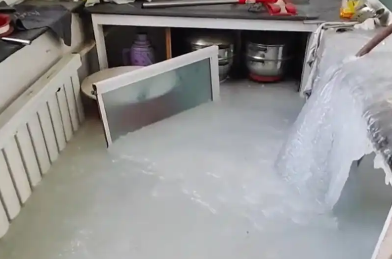真正容易冻裂的,反而是那种长时间不用、又靠近外墙、还完全不走水的管段。很多北方老房子,冬天出远门前都要把水放干,就是这个原因。这名男子家里属于反过来,水一直跑,地面温度低,流出来的水先铺在地上,慢慢结冰,越积越厚,最后变成了现在这个样子