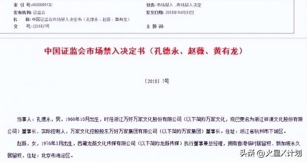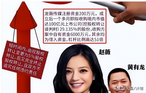 更致命的是资本市场的连环爆雷,2016年,她通过空壳公司龙薇传媒以6000万杠杆收购万家文化,导致投资者血本无归,被证监会罚款30万并禁入市场5年。