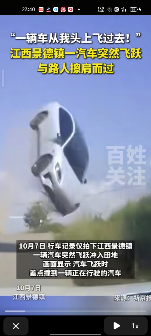 目前,当地交警部门已介入调查,初步排除酒驾、毒驾,具体原因仍在进一步技术鉴定中。从行车记录仪视频可以看出,此次起飞的车辆系一辆广汽埃安RT纯电动车。有知情人士透露,司机自称"被太阳反光晃眼,误将油门当刹车"。提醒大家,开车行经上下坡路段时,务必提前减速,遇到强光干扰时,可短暂开启遮阳板或降低车速,切勿在视线受阻时盲目操作。