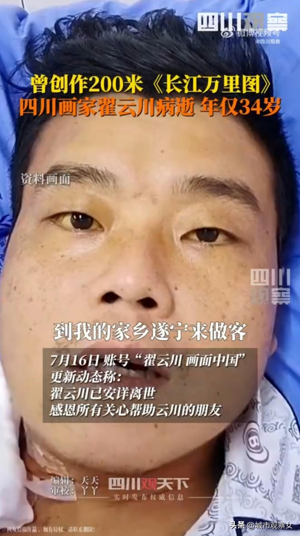 今日头条里,那条消息刺痛了所有人的眼睛:34岁,四川遂宁,青年画家翟云川,因肝衰竭,永远地离开了这个世界。