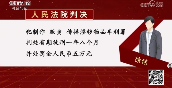 最终,徐伟因传播淫秽物品罪,被判处1年零8个月有期徒刑。公司得知此事后,对他进行了开除处理。
