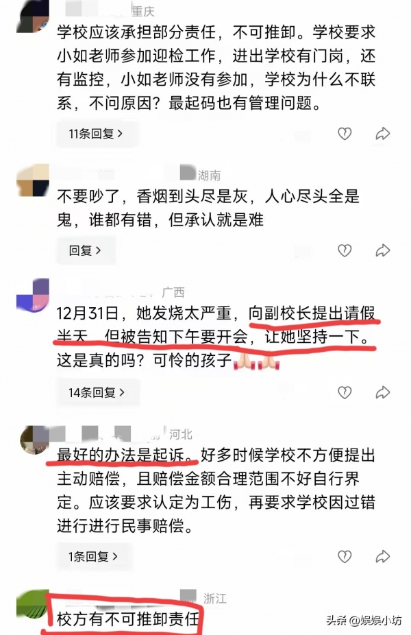 对门老师后来回忆,7号中午给她送过盒饭,当时的体温枪显示37.8度。下午有学生帮她打扫过宿舍,但1月8日后,整整一天没人见过她。到10号晚上,几个学生敲她宿舍门,没人应声。钥匙还是学生找来才打开,里面躺着一动不动的小如。