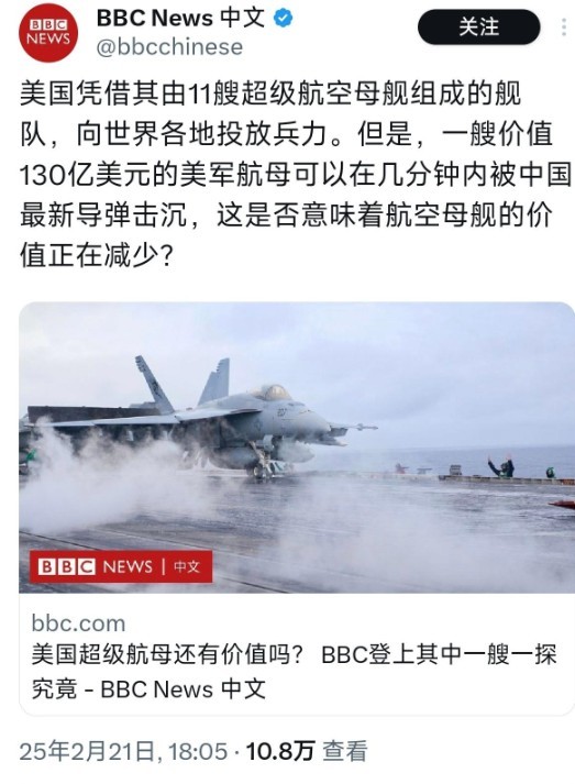 为了报复美国的"断供",BBC甚至开始"捧杀"中国,以此来恶心美国。它制作了《中国制造2025》纪录片,把中国科技吹得天花乱坠;甚至在军事报道中耸人听闻地宣称"中国导弹几分钟即可击沉美国航母"。