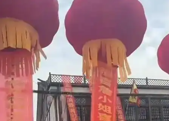 人们常说结婚是人生大事,但很少有人想到,离婚也能成一场"喜事",现场布置得挺热闹。除了拱门和那条显眼的横幅,旁边还挂了一排红气球,每个气球下面都缀着祝福语。不远处还立了块牌子,上面写着"离婚派对"几个字