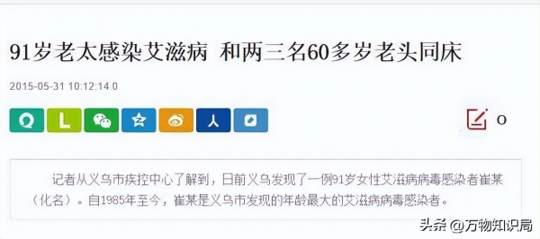 2015年,一则炸裂的信息闯入人们的视野,浙江义乌92岁老太崔某竟然被确证为艾滋病患者!而且得病的原因正是因为不健康的"性行为"导致的。