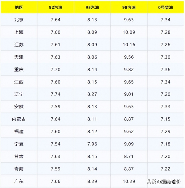 今日油价(3月16日)92,95,98汽油与0号柴油请看下方油价列表