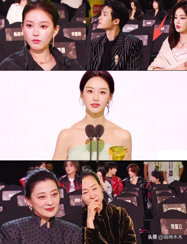 而且在陈都灵发表感言的过程中,白鹿全程也几乎是低头状态,不像檀健次一样有明显的抬头观看动作。关于低头这个问题,其实可能跟主办方安排的小屏有关系,认真观察会发现梅婷、奚美娟等也都是看着眼前的小屏,只是她们脸上露出了满意的笑容,所以给人的感觉就很认真,不像白鹿看起来比较淡然。
