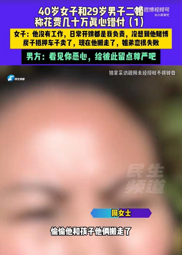 面对《小莉帮忙》栏目的采访,周女士满脸无奈地说:"这几年我把所有积蓄都搭进去了,钱也没了,人也走了,我真的太失败了。"