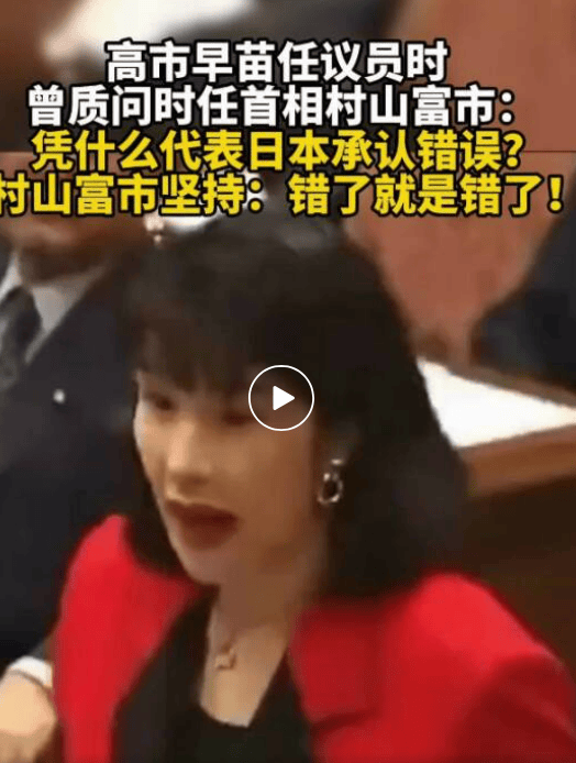 1994年,高市早苗就在国会公然质问时任首相村山富市为何承认当年的侵略战争是错误的。此外,她认为日本没有强制把朝鲜半岛居民带去日本,否认"慰安妇"的存在。
