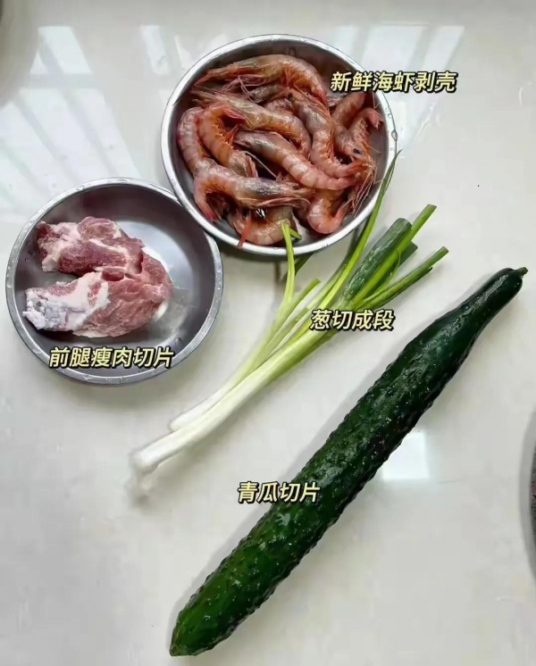 2. 虾仁加料酒淀粉抓匀,焯水30秒
