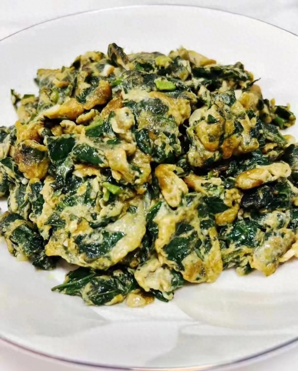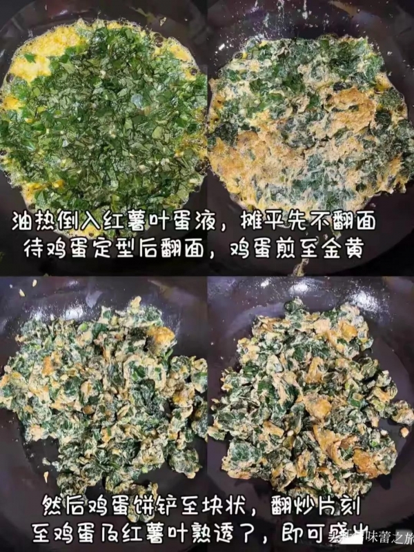 第一道:红薯叶炒鸡蛋(补钾冠军)