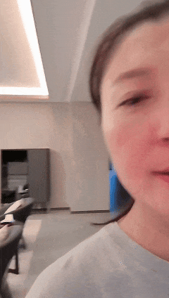 面前摆的果盘也只是萝卜跟圣女果,背景里面的衣服也都是很普通常见的,不是那种高定大牌什么的。