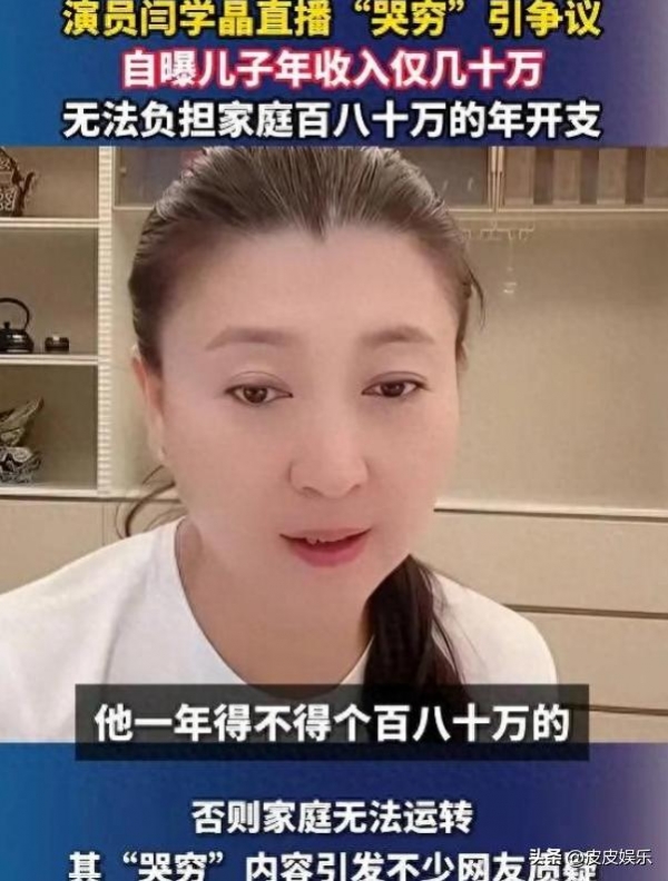 诉苦自己30多岁的儿子,说什么一个戏只赚几十万,一年没有个百八十万的家里根本运转不了。