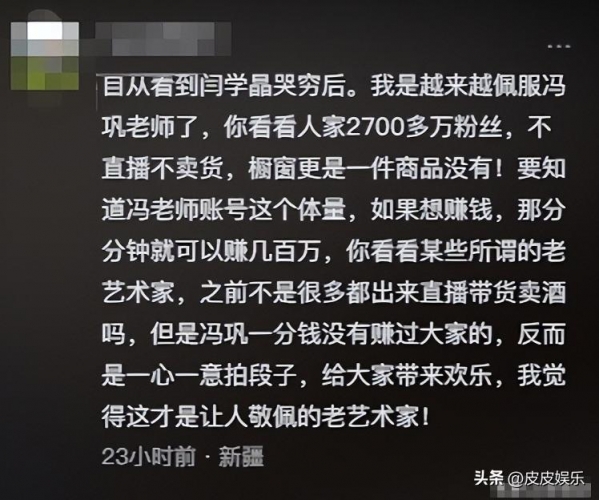 从来没有拿自己的热度去直播带货,就光是冯巩的这一件件例子,闫学晶就就输的很彻底了。