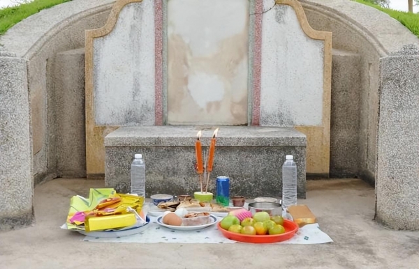 祭祖时,咱们会把祭品整齐地摆放在坟前,这是对先人的尊重。