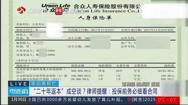 更让人揪心的是,类似的"返本陷阱"还有很多:浙江张女士交了23万保费,居然要60年才能取回本金;郑州姬先生买的分红险,交了10年都没回本!这一个个案例,都在提醒我们,投保一定要擦亮眼睛,千万不要相信口头承诺,一定要仔细看合同条款,不懂就问,不要稀里糊涂签字。