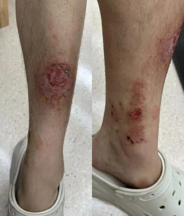 当小邱拉起裤脚后,接诊的皮肤性病科副主任医师钟剑波也吓了一跳,看得十分"揪心"。