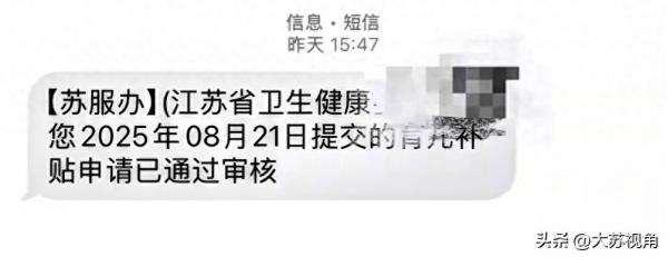 这两天打开江苏家长群,十句话里有八句在聊育儿补贴。南京宝妈李女士凌晨两点在群里晒截图:"9号半夜填的信息,就拍了张出生证明和户口本,今天一早就收到通过短信,这效率绝了!"苏州的王先生更直接,截图里"待发放"三个字标红,配文:"终于等到了!每月几百块,尿不湿钱算是有着落了!"