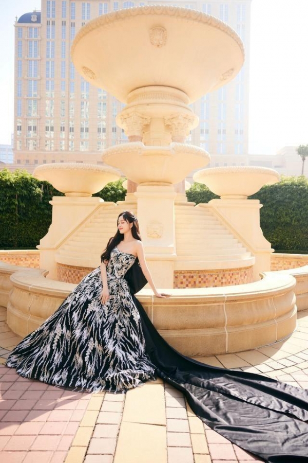 吴宣仪的身材被低估了,身穿的这款抹胸裙,裹出凹凸感窈窕迷人,就是勒出"副乳"有点尴尬。这袭裙装主体用色就只有黑白,不仅符合大众的审美,还能展现出经典又高级的气质。在黑色裙身上添加样式不规则叶片印花,看起来还很有清新自然的美感。