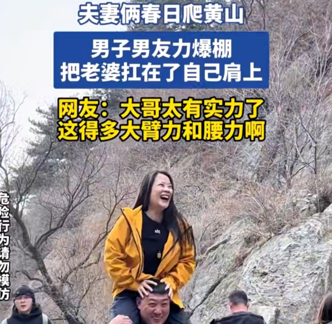 视频一经发布便迅速走红,不少网友纷纷留言感叹:"大哥太有实力了,这得多大的臂力和腰力啊!""这男友力直接拉满,太宠妻了!" 也有网友担忧安全问题:"山路这么陡,扛着人走太危险了,万一滑倒后果不堪设想。"