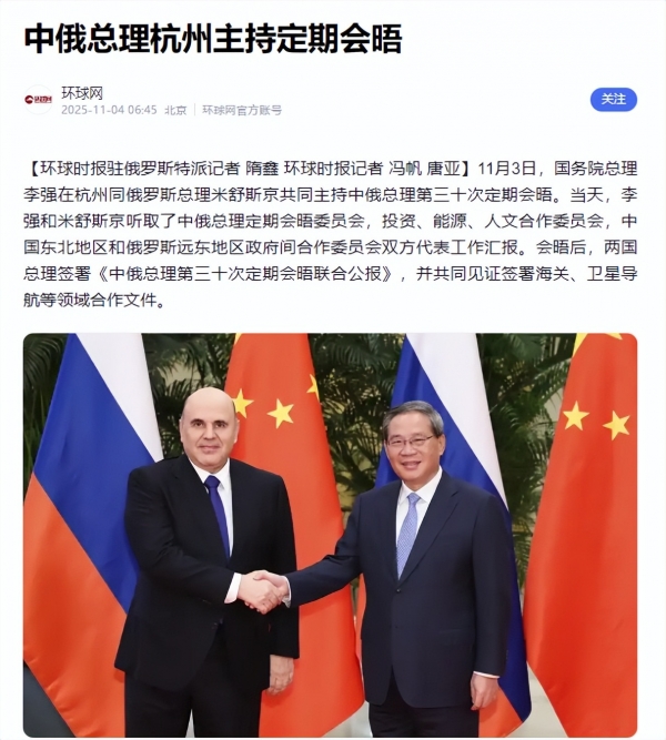 刚刚过去的 11 月 3 号到 4 号这段时间,俄罗斯总理米舒斯京来到中国访问,这两天里收获颇丰。