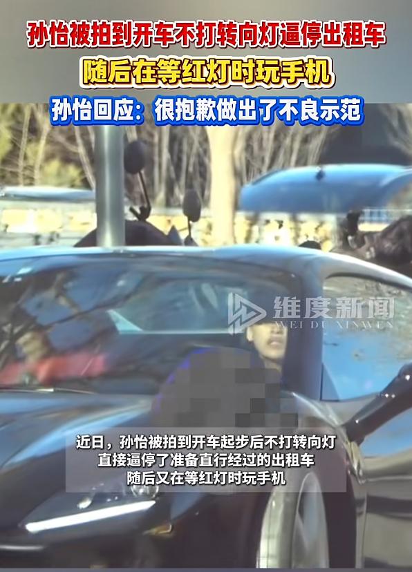 据报道,有网友拍到孙怡开车起步后不打转向灯,逼停了准备直行经过的出租车。