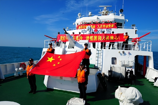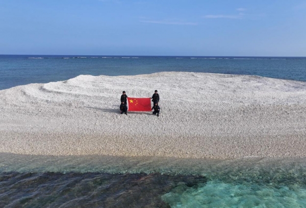 就在今年4月中旬,我国海警人员高举五星红旗,在南沙群岛铁线礁上,留下了明确的中国记号。