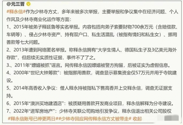 在网上各种传闻下,少林寺官方终于针对释永信发布了声明!