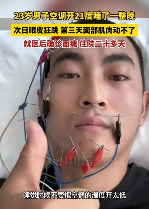 原来,就因为晚上贪图凉爽,把空调温度调到了21度,然后一觉睡到大天亮,结果一觉睡醒竟成了面瘫。