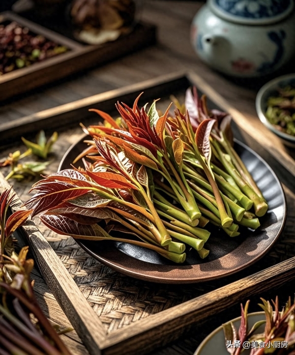 香椿芽是立春后最早的"春味",刚采摘的香椿芽带着独特的清香,咬一口脆嫩多汁,是普通蔬菜难比的鲜爽。