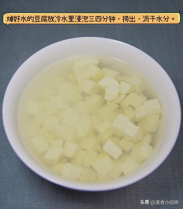 ✅ 嫩豆腐切成小块,放入盘中摆好,撒上香椿碎末和蒜末
