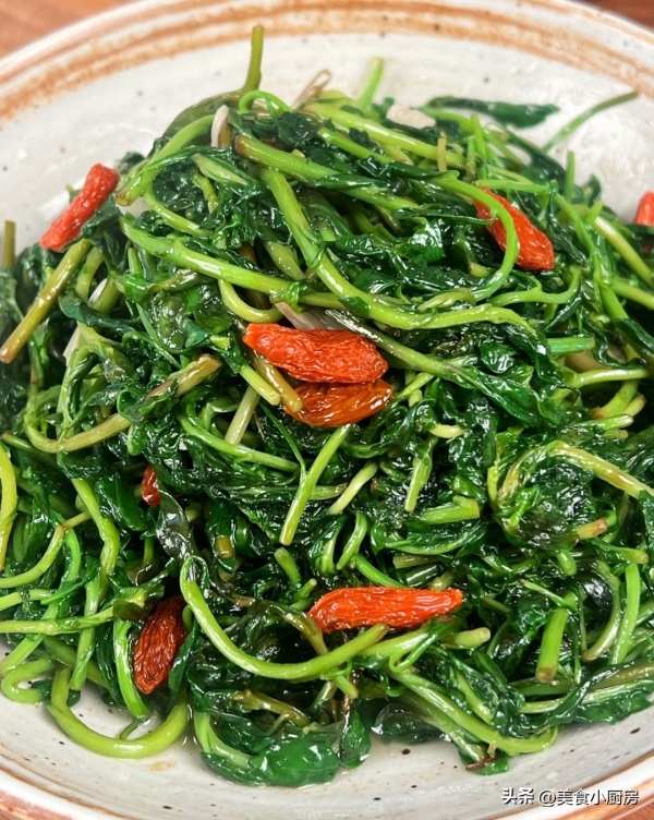 枸杞芽又称"枸杞尖",自带淡淡的清甜,口感脆嫩无渣,做法简单却能凸显其本味,是立春解腻的绝佳食材。