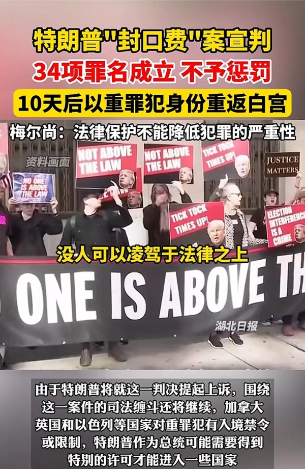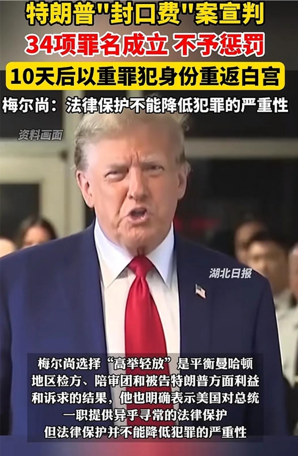 特朗普是美国总统史上,首位被刑事起诉的总统;首位遭遇刑事审判的总统;首位在刑事案件中被裁定有罪的前总统;首位以重罪犯身份行使职权的当选总统。美国高院刚刚判了特朗普34项罪。