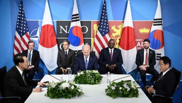 7月份,美国开始不断强化与日韩菲的合作,美日"延伸威慑",将调整驻日美军司令部,加强美日军队指挥权。美国宣布会竭力保护日本,包括用核武器,美韩同盟升级到核武,日菲则签署"互惠准入协议",可以相互派兵,美国通过奥库斯联盟向澳大利亚输出核潜艇,如此种种,其实就是美国对付俄罗斯的"北约东扩"的亚洲版。