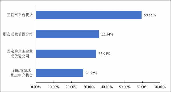 线上线下货源渠道此消彼长。调查显示,在个体司机中,通过互联网平台找货成为主要货源渠道,占比达59.55%,较上年调查增加16个百分点。线上线下货源来源渠道此消彼长,互联网平台日益成为重要货源来源。