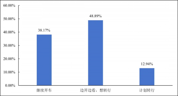 调查显示,2024年货车司机选择继续开车的占比38.17%。48.89%的司机边开边看,想转行。两者合计会继续开车的占87.06%。计划转行的占比仅12.94%。