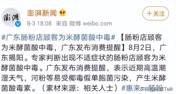2020年8月广东也发生了一起食用肠粉导致食物中毒的事件,罪魁祸首依然是米酵菌酸毒素。