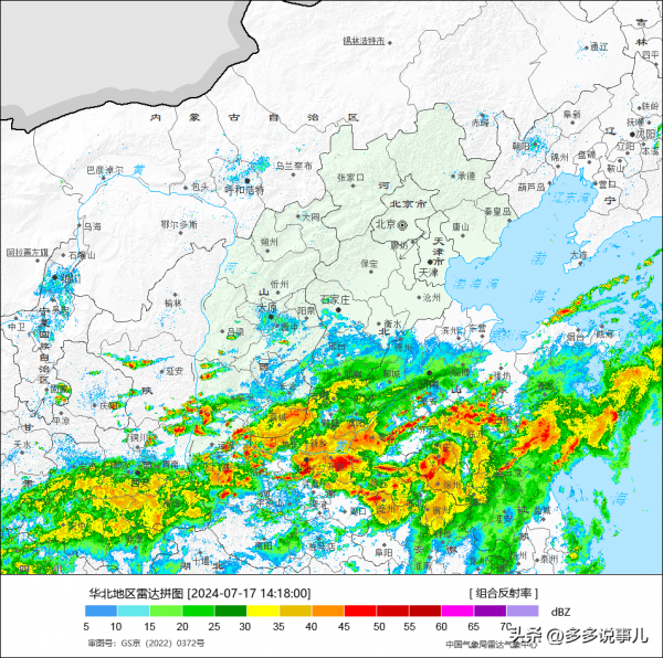 从雷达云图中分析,随着主雨带的推进,强降雨主要回波在菏泽南部、济宁南部、枣庄、临沂南部、日照和青岛南部一带,降雨比较强烈,而菏泽北部、济宁北部、临沂北部、聊城、泰安、济南、淄博南部、潍坊、青岛北部及烟台地区,处于西南暖湿气流的边缘,有中到大雨出现。