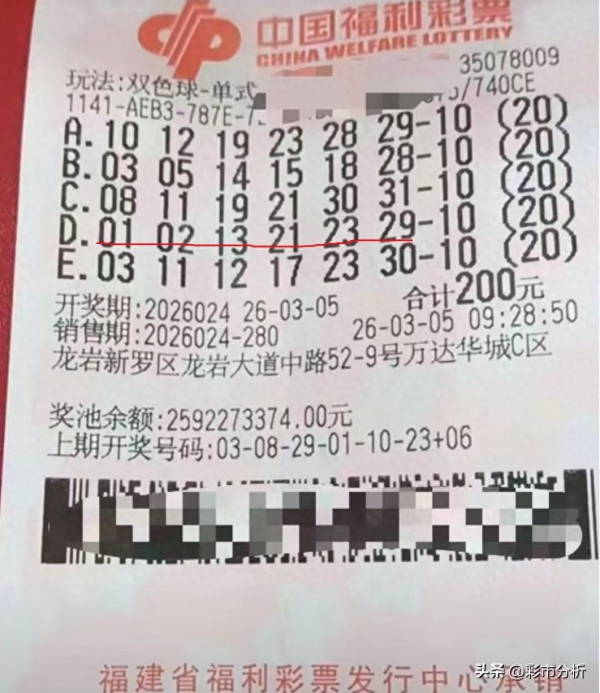 福彩双色球第26024期开奖,当期全国共开出2注1000万头奖和79注84万二等奖,而福建一位狠人险些创造奇迹:一票单挑中20注二等奖,总奖金高达1686万元甚至比头奖还高,并只差蓝球一码无缘20注头奖至少错过9000万!