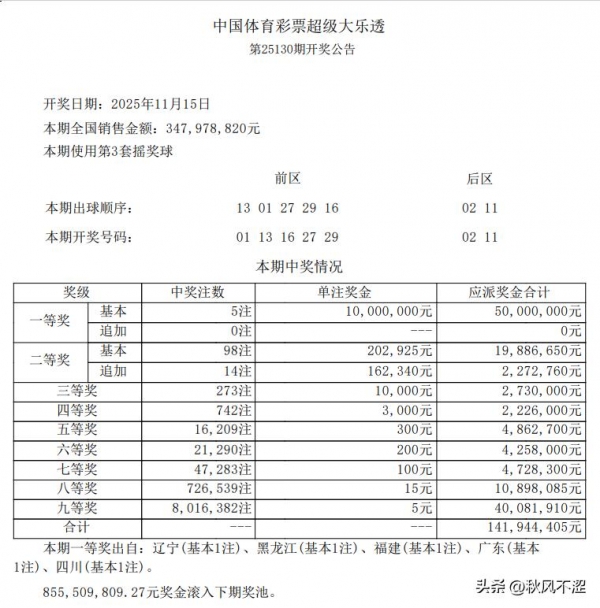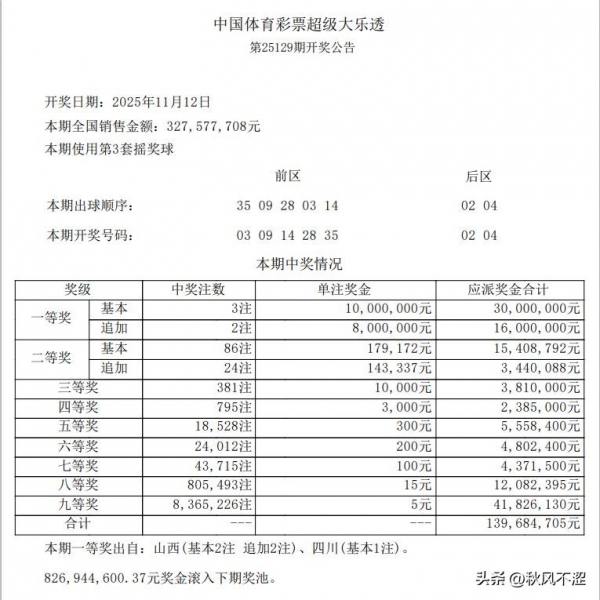 上期大乐透开出了3注一等奖,每注奖金1000万,分落2地,其中山西2注追加成为当期最大的一等奖,二等奖86注,每注17.9万,以下是上期开奖公告:
