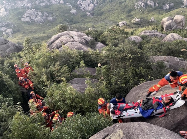 经检查,男子身上多处擦伤,脚踝处有明显伤口,在进行相应处理后,消防员帮其穿戴好防护装备,上方人员拉紧绳索,上下救援人员合力,一步步护送其向安全地带转移。