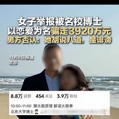 梁某,1980年出生,今年44岁,是北京大学的博士。他在某自媒体平台拥有一定粉丝,分享的都是一些太极方面的视频。