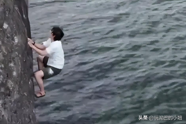 他在尝试一项海边岩壁的攀爬时,因为手滑,从几米高的地方掉进了海里。