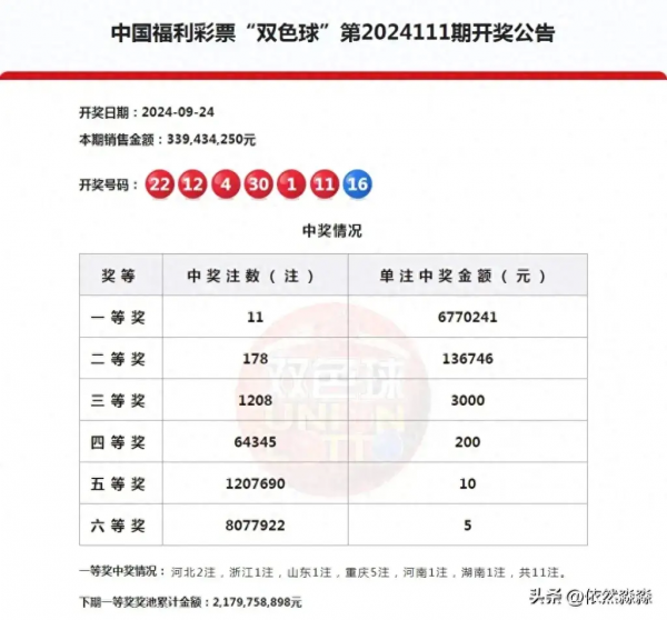 本期一等奖11注,单注奖金677万,重庆独揽其中5注,二等奖178注,单注奖金13.6万,奖池21.7亿。