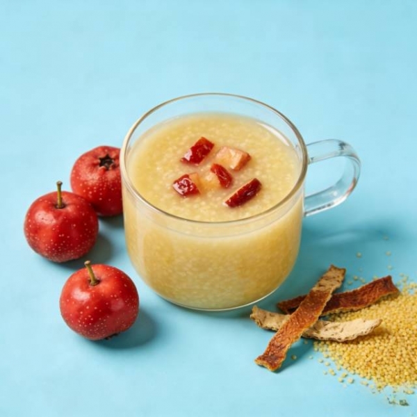 小米健脾和胃、补益虚损,搭配山楂陈皮,既能消食化淤,又能滋养脾胃,适合脾胃虚弱又容易积食的人群,可作为早餐或晚餐,长期食用能改善消化功能,减轻小腹负担。
