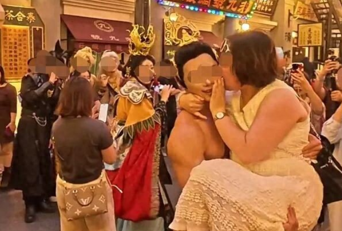 NPC公主抱女游客被吻脸,景区回应:亲吻行为不允许,疑营销号博眼球