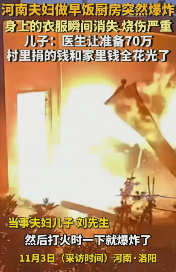 2024 年 10 月 10 日早晨,河南洛阳的刘先生和妻子在做早饭时厨房突然爆炸,这对夫妻身上的衣服瞬间消失。