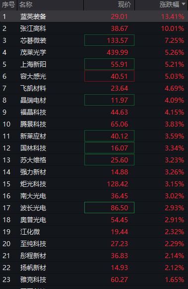 A股光刻机概念股盘中拉升,张江高科直线涨停,蓝英装备、思泰克涨超5%,凯美特气、海立股份、茂莱光学、新莱应材、波长光电等跟涨。