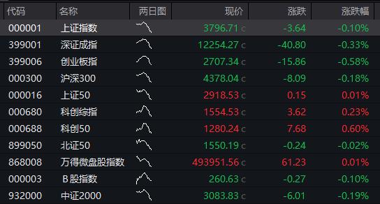 上证指数低开0.1%,创业板指跌0.58%。