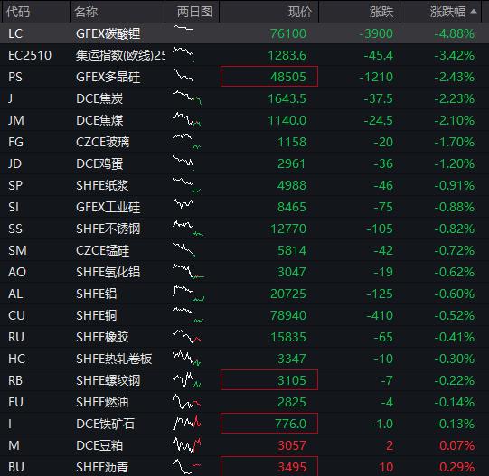 商品期货开盘,碳酸锂主力合约跌超2%,纯碱、玻璃、对二甲苯、原油、苯乙烯、焦煤、纸浆、集运欧线跌超1%。玉米涨超1%。